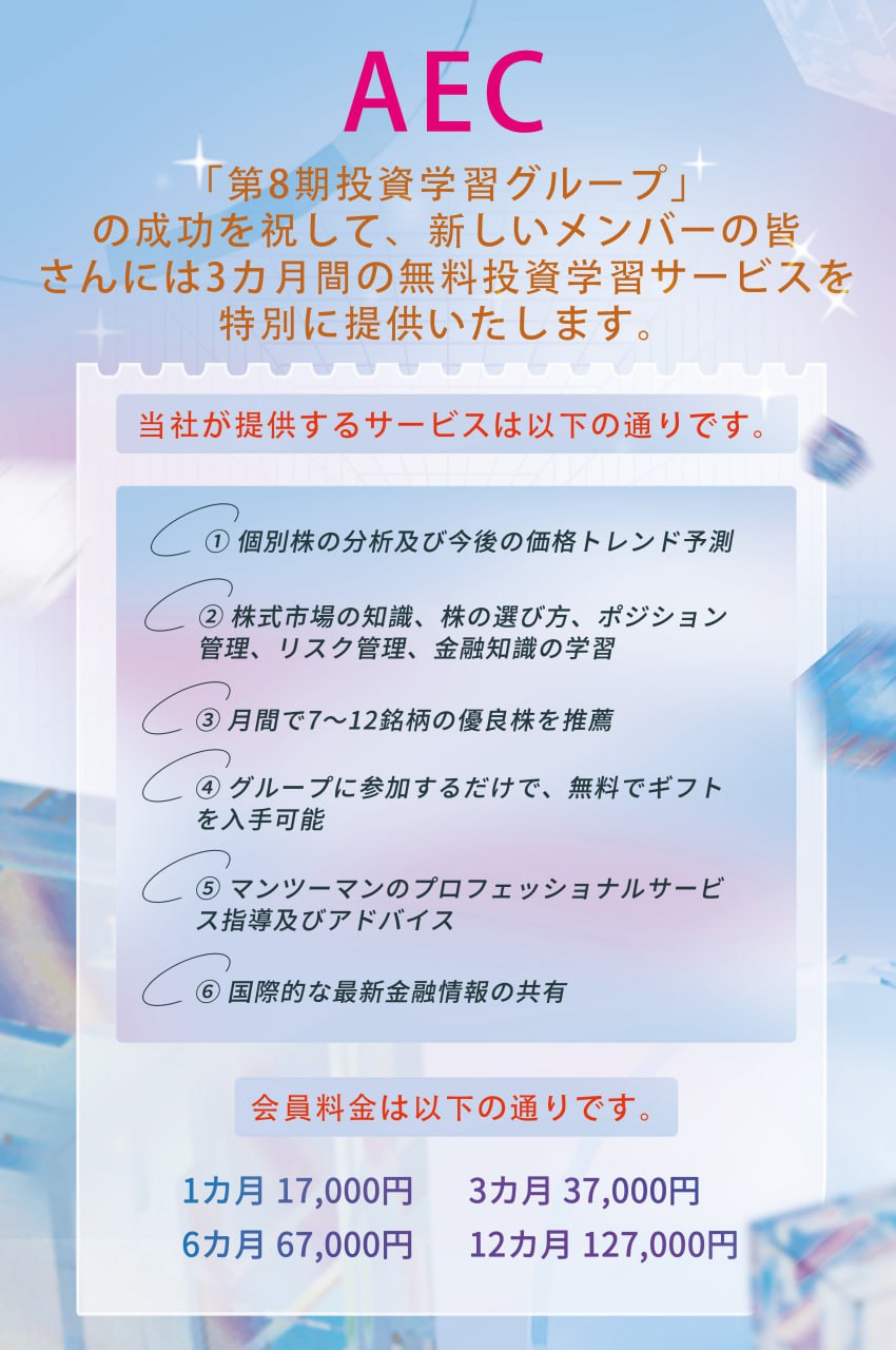 AEC第8期投資学習グループで正式に募集が開始され、心よりお祝い申し上げます。